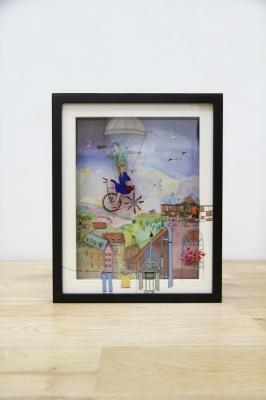 絵を施したガラスを何枚も重ね、光と影を融合した3Dアート。層を作ることで奥行きができ、外からの光によって薄っすらと影が浮かび上がります。細かな描写を、あらゆる角度から楽しめるのもこの作品の魅力。ずっと眺めていても飽きない面白さがあります。