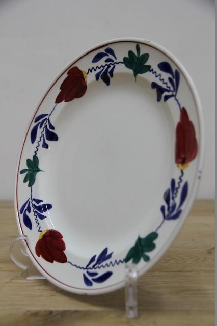 BOCH「Boerenbont」(製造年は1960年代から1980年代)シリーズのディナープレート。グリーン・ネイビー・バーガンディーの色で連なるようにボタニカルデザインがハンドペイントにて描かれている素敵な一点。とても状態が良いヴィンテージ品です。
