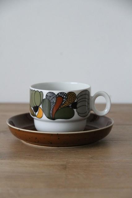 レトロなボタニカル柄がとても印象的なドイツRosenthal社製thomasの"Kiruna"シリーズのカップ&ソーサー。Rorstrandで活躍したHertha Bengtsonによるデザインです。