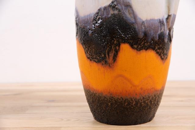 「Fat Lava」とは、1950~70年代に主に旧西ドイツで生産されていた陶磁器の一種。「肥えた溶岩」と直訳できるその意味のとおり、火山口から流れ出た溶岩を彷彿させる釉薬の色使いや仕上げ方が最大の魅力です。