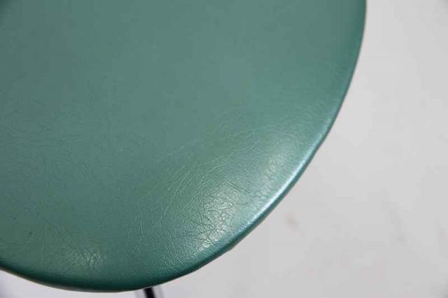 ドイツで見つかったヴィンテージスツールです。三角形の座面にスチール製の脚が付いています。座面のエメラルドグリーンの色がとても綺麗です。小ぶりで使いやすいスツールです。