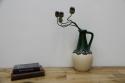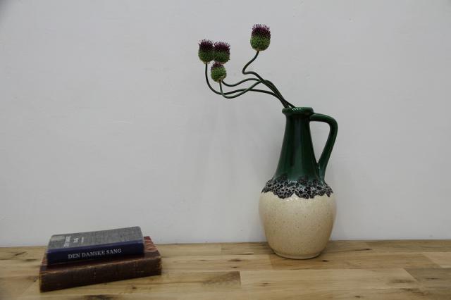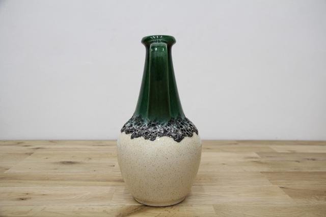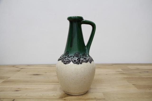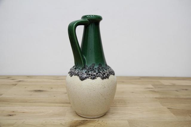 西ドイツにて製造されていたFatlavaという名がついた陶磁器、BAY Keramik社製のフラワーベースです。たまごのような形からスラリと伸びる口までのデザイン、濃い緑の色が目を惹きます。泡のような黒いボコボコとした釉薬の仕上がりもFatLavaらしい特徴が出ています。