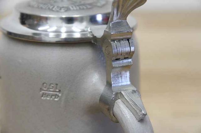 ヨーロッパでペストが大流行した際に生まれたといわれている蓋付きマグ。ハエがペスト菌を媒介するという説があり、ビールを飲んでいる最中にハエが入らないようにという理由から作られたそうです。蓋や親指で開け閉めできるような形状になっています。