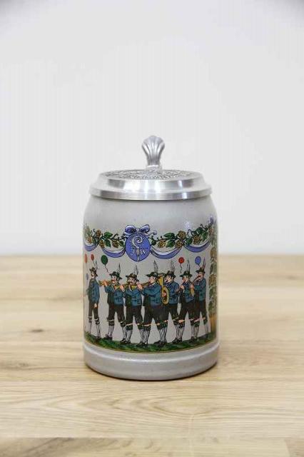 Münchenミュンヘンの老舗醸造所アウグスティナー-ブロイの蓋付き陶器製のビアマグです。バイエルン州の州都ミュンヘンと言えば、世界最大規模のビールの祭典、オクトーバーフェストが行われることでも有名な街ですね。初回はバイエルン王子ルードヴィヒ1世と王女テレーゼの結婚のお祝いとして開催されたのが始まりだったそうですよ。
