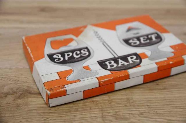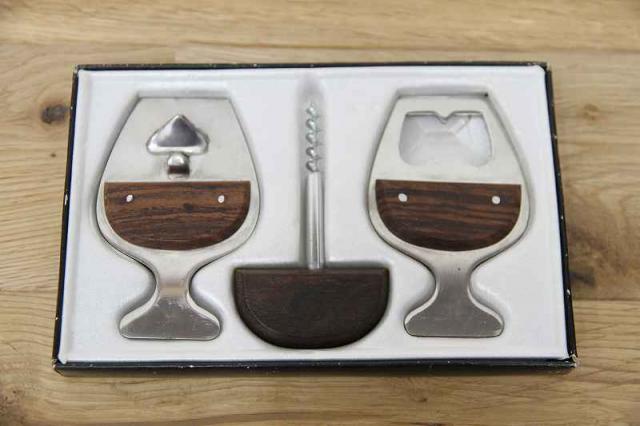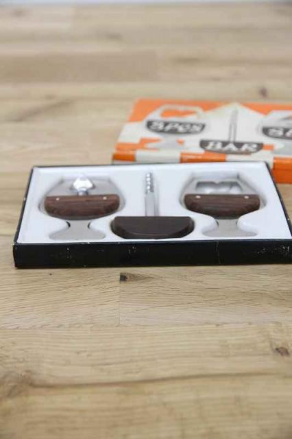 ワイングラスのフォルムがオシャレなヴィンテージのオープナーセットです。箱入りの状態で見つかりました。お酒好きなあの人へ、気の利いたギフトで送るのも良いですね。