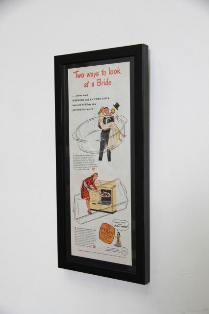 LIFE誌のヴィンテージ広告を額装したアートフレーム。PYREXが当時、結婚祝いのギフトのために出していた広告。