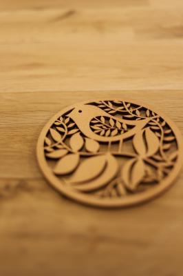 リトアニア製の木製コースター。天然木のあたたかみある白樺のコースターです。コースターとしてお使いにならない時は、花瓶の下に敷いたり、壁や天井から吊るしてオーナメントとして使うとユラユラ揺れて癒されるインテリアにもなります。