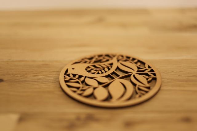 リトアニア製の木製コースター。天然木のあたたかみある白樺のコースターです。コースターとしてお使いにならない時は、花瓶の下に敷いたり、壁や天井から吊るしてオーナメントとして使うとユラユラ揺れて癒されるインテリアにもなります。