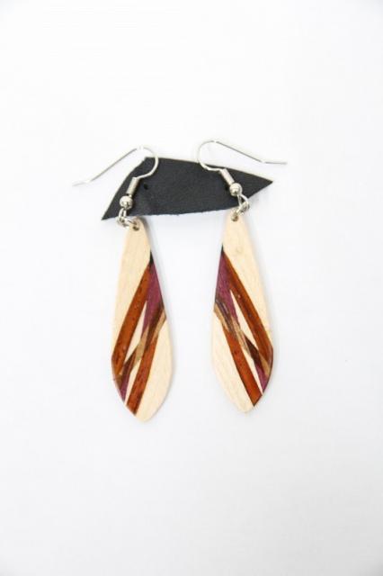 1979年創業アメリカのクラフトメーカー“davin&kesler”のピアス。木が本来持つ色や木目を生かした組木デザインは非常に細やかで、しなやかな曲線も大変美しいです。木目の落ち着いた雰囲気は、どんなテイストのファッションにも合わせやすそうです。
