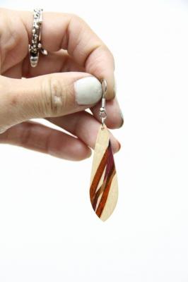 1979年創業アメリカのクラフトメーカー“davin&kesler”のピアス。木が本来持つ色や木目を生かした組木デザインは非常に細やかで、しなやかな曲線も大変美しいです。木目の落ち着いた雰囲気は、どんなテイストのファッションにも合わせやすそうです。