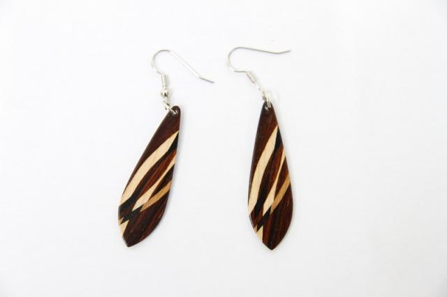 1979年創業アメリカのクラフトメーカー“davin&kesler”のピアス。木が本来持つ色や木目を生かした組木デザインは非常に細やかで、しなやかな曲線も大変美しいです。木目の落ち着いた雰囲気は、どんなテイストのファッションにも合わせやすそうです。