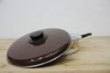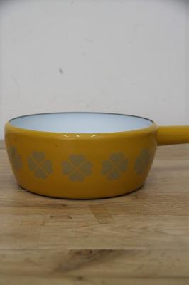 ヴィンテージの蓋つき片手鍋。レトロな花柄プリントとってもかわいく、鍋も浅めでそのまま食卓に並べたりもしやすい、とても使い勝手の良いサイズです。