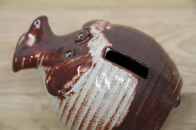 ドイツから届いたブタの貯金箱。陶器製です。フニャンと曲げられれた鼻がなんとも特徴あるデザインになっていますね。取り出し口はありませんので、お金が貯まったら・・・、そのままにしましょう:)