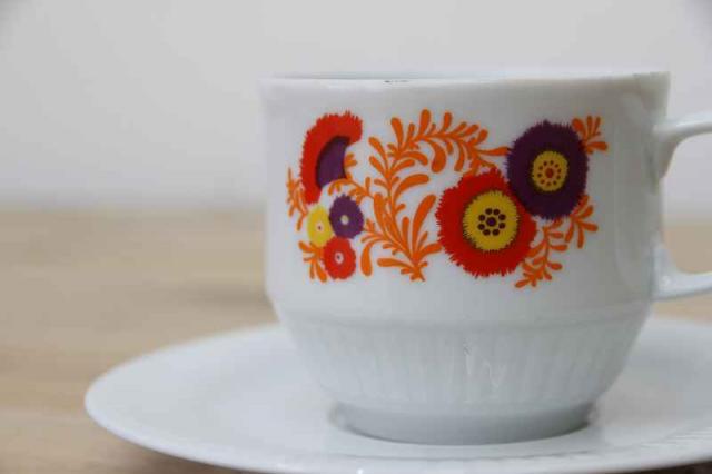 Made in Germany ドイツBavaria製ヴィンテージのカップ&ソーサーです。レトロな花柄プリントがどこか懐かしい感じの強い、昭和レトロにもありそうなデザインです。