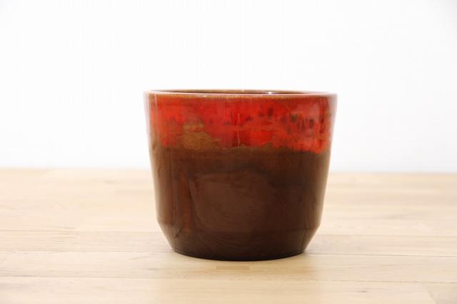 ドイツ製ヴィンテージ、1960-70年代製の陶器製フラワーポットです。FatLavaデザインらしい艶感と、そして茶色と赤が混じり合った釉薬使いが印象的。赤が強くないので主張しすぎず、使いやすいフラワーポットだと思います。