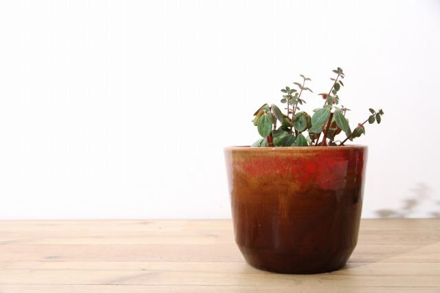 ドイツ製ヴィンテージ、1960-70年代製の陶器製フラワーポットです。FatLavaデザインらしい艶感と、そして茶色と赤が混じり合った釉薬使いが印象的。赤が強くないので主張しすぎず、使いやすいフラワーポットだと思います。