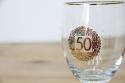 ドイツで見つかったヴィンテージの脚付きグラス。デコレーションされた50の文字、なにかの記念品だったのでしょうか。50歳のお誕生日、ご結婚50年のお祝い、創業50年のお祝いなどなど、ギフトにもおススメです。