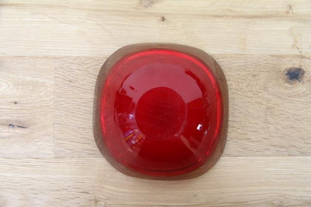 1950年代製のMuranoGlassの灰皿です。ガラスの色使いに遊び心がある魅力的なムラーノグラス。赤のガラスには、よく見るとクリアとちょっと黄色のような色が繋がって見えます。
