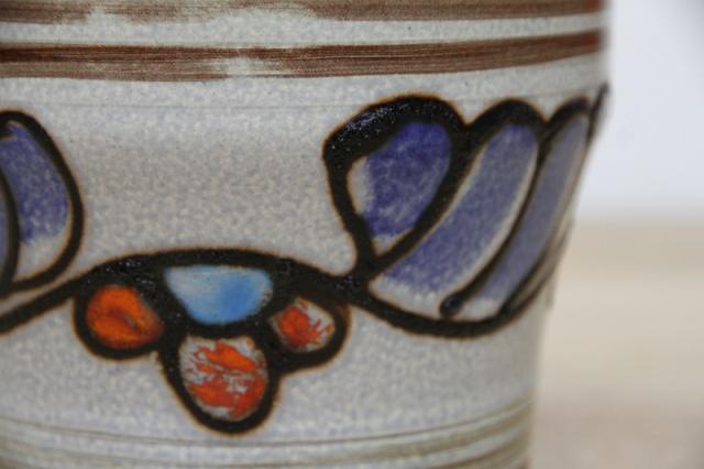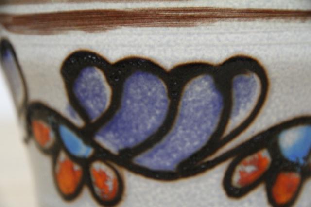 ドイツ製ヴィンテージのレトロなフラワーポット。陶器製です。ブルーとオレンジの釉薬の色が映えますね。お好きなインドアグリーンと合わせてインテリアとしてお楽しみください!