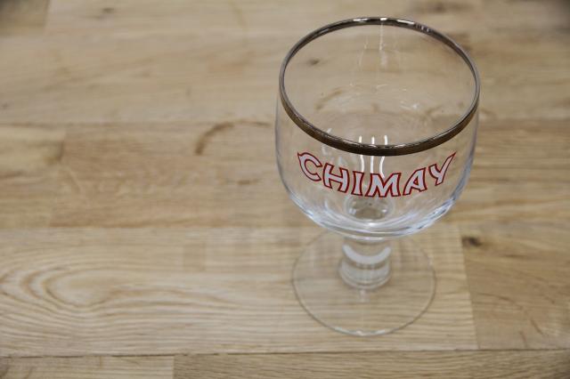ベルギービールの代表格でもあるかもしれませんね、CHIMAYシメイビールのロゴがプリントされたビアグラスです。