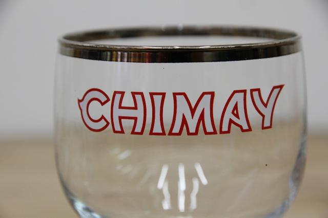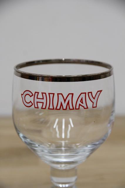ベルギービールの代表格でもあるかもしれませんね、CHIMAYシメイビールのロゴがプリントされたビアグラスです。