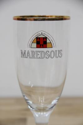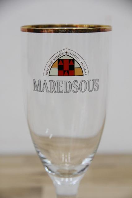 マレッツ修道院。若き修道士の志が作ったビールといわれているというMAREDSOUSビールのロゴがプリントされたビアグラスです。