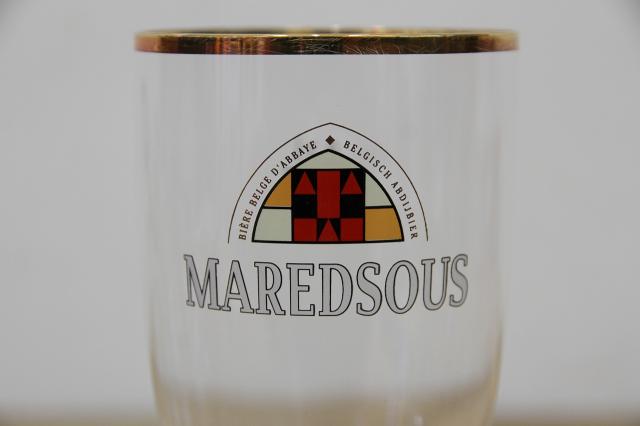 マレッツ修道院。若き修道士の志が作ったビールといわれているというMAREDSOUSビールのロゴがプリントされたビアグラスです。