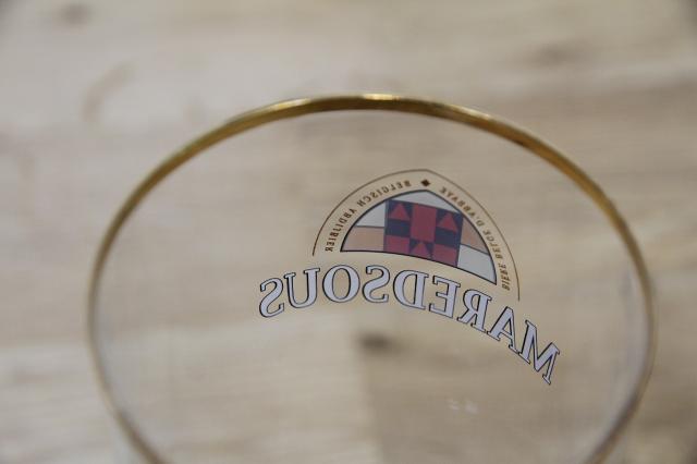 マレッツ修道院。若き修道士の志が作ったビールといわれているというMAREDSOUSビールのロゴがプリントされたビアグラスです。