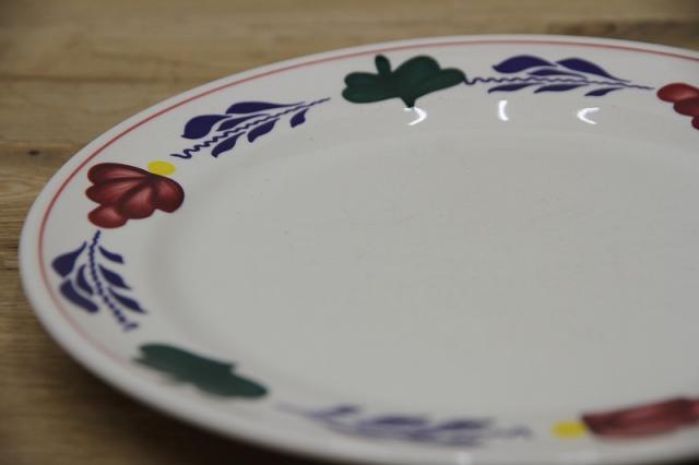 BOCH「Boerenbont」(製造年は1960年代から1980年代)シリーズのディナープレート。グリーン・ネイビー・バーガンディーの色で連なるようにボタニカルデザインがハンドペイントにて描かれている素敵な一点。とても状態が良いヴィンテージ品です。