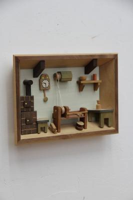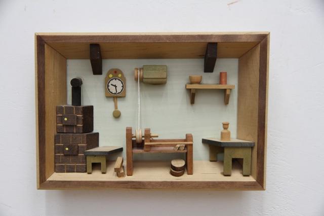 エルツ山脈のふもとに住む農夫の家。それを立体感ある構図で作られた木製の壁掛けオーナメント。旧東ドイツのものだそうです。ドレスデンなどのあるザクセン州のエルツ山脈、このあたり一帯には昔から多くの木彫りの工房があるそうです。