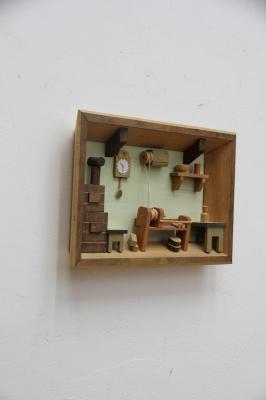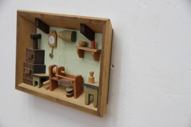 エルツ山脈のふもとに住む農夫の家。それを立体感ある構図で作られた木製の壁掛けオーナメント。旧東ドイツのものだそうです。ドレスデンなどのあるザクセン州のエルツ山脈、このあたり一帯には昔から多くの木彫りの工房があるそうです。