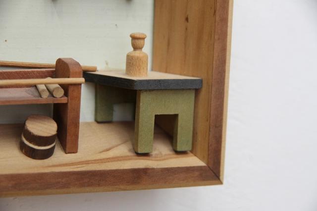 エルツ山脈のふもとに住む農夫の家。それを立体感ある構図で作られた木製の壁掛けオーナメント。旧東ドイツのものだそうです。ドレスデンなどのあるザクセン州のエルツ山脈、このあたり一帯には昔から多くの木彫りの工房があるそうです。