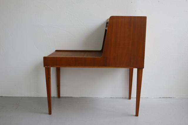 1950年代スウェーデン製のナイトスタンドです。使用されている木材はチーク、マホガニーと並んで世界三大銘木のひとつに挙げられるウォールナット(くるみ)。2段になっていますので上に植物や照明をを置いて、下の段には本を置いたりベッドサイドはもちろん、ソファー横に置いてもちょうど良く使える収納家具です。
