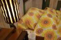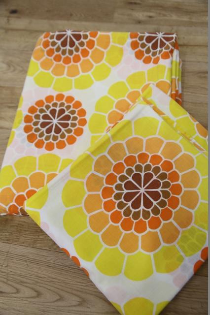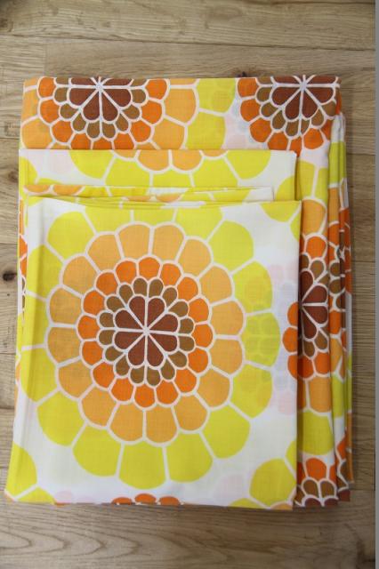 オレンジ色の枕カバーが2点、黄色のシーツカバーもセットになっています。