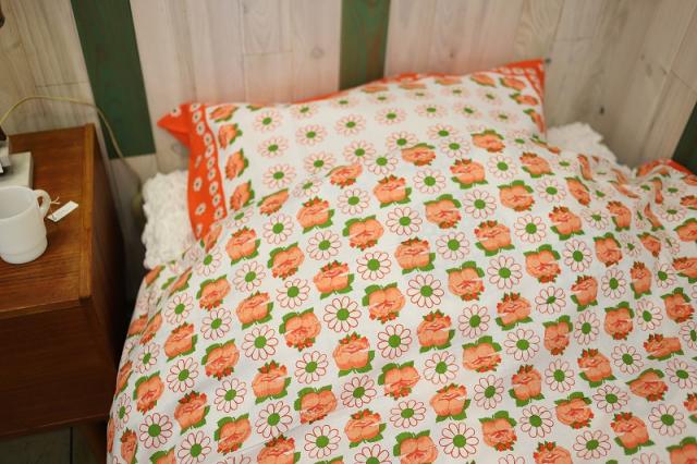 GRUNGEのショップカラーでもあるオレンジ系カラーのベッドリネン。