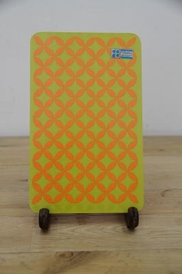 1970年代製の朝食用ボードです。メラミンラミネートされているドイツ製アイテム。パンなどの食品を置いたりコースターとして使ったりと、レトロな彩りを食卓で楽しんでくださいね。