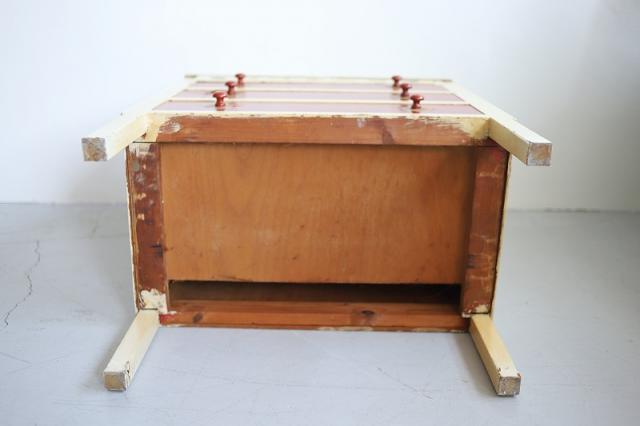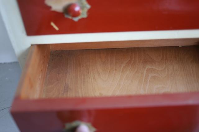デンマークで見つけたチェスト。上段の扉を手前に引っ張ると大きな収納スペース、そして引き出し収納が3段というデザイン。赤と白のカラーペイントがどこか懐かしいようなレトロ感ある仕上げの可愛い家具です。