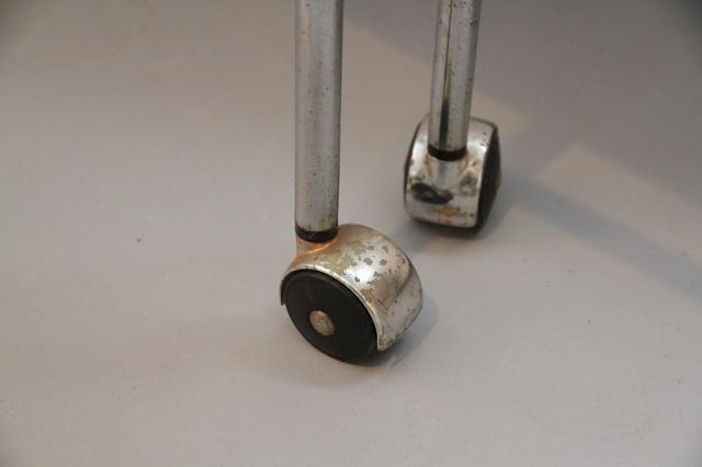 クロームのフレームと木目の棚板という、当時らしい素材の組み合わせが魅力的な一台です。