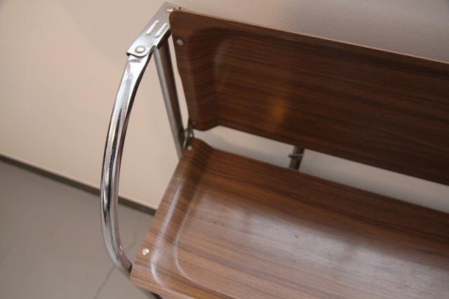 クロームのフレームと木目の棚板という、当時らしい素材の組み合わせが魅力的な一台です。