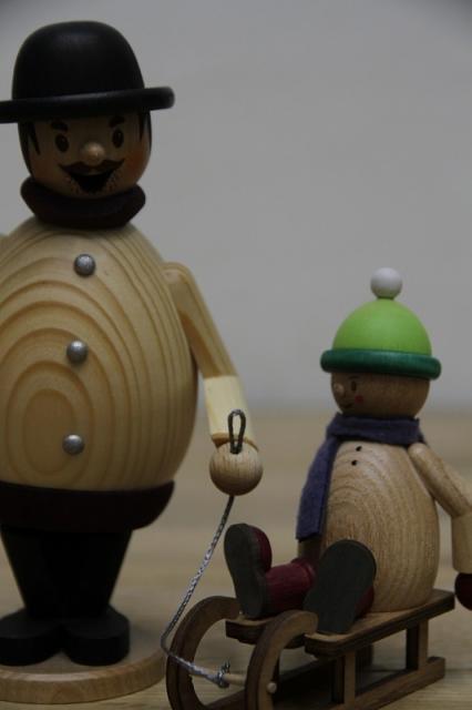 ドイツKuhnert社のパイプ人形、煙だし人形と呼ばれたりもします。ソリに乗った女の子が可愛いです。