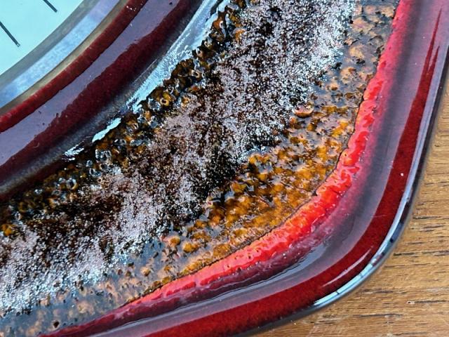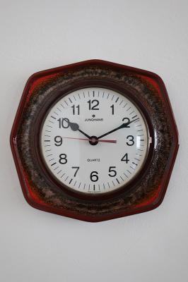 ドイツ製ヴィンテージの陶器製掛時計です。FatLavaテイストの強いレッドとブラウンの色合いがとっても引き立つデザインです。