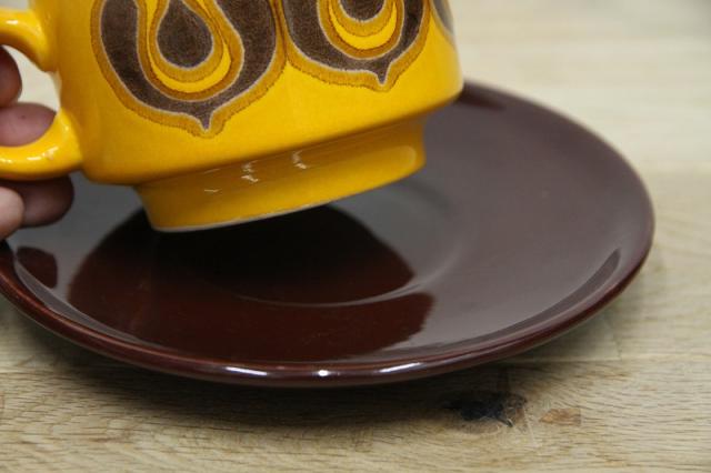 1970年代Waechtersbach社製のカップ&ソーサー。Waechtersbachは1832年創業、食器市場で国際的に知られているドイツのメーカーです。レトロポップな色使いとぽってりとした質感は類を見ないような独特な存在感あるデザインです。