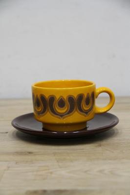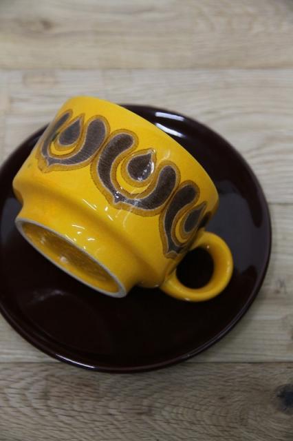 1970年代Waechtersbach社製のカップ&ソーサー。Waechtersbachは1832年創業、食器市場で国際的に知られているドイツのメーカーです。レトロポップな色使いとぽってりとした質感は類を見ないような独特な存在感あるデザインです。