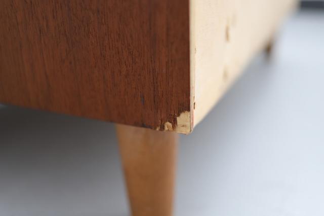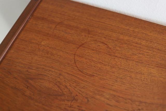 チーク家具の魅力は、製造から60年近く経過していても、このような質感を楽しむことができ、自分で愛着を持って”育てる”ことができるところです。日々のお手入れについては、ハワード社/オレンジオイル 又は フィーデンワックスでのお手入れをお勧めしています。”使う前が一番美しい”、のではなく、”使いながら暮らすことが楽しい”を体感していただけると嬉しいです。