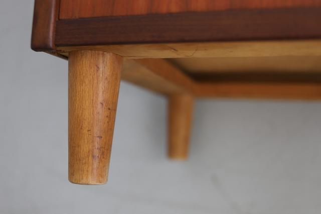 チーク家具の魅力は、製造から60年近く経過していても、このような質感を楽しむことができ、自分で愛着を持って”育てる”ことができるところです。日々のお手入れについては、ハワード社/オレンジオイル 又は フィーデンワックスでのお手入れをお勧めしています。”使う前が一番美しい”、のではなく、”使いながら暮らすことが楽しい”を体感していただけると嬉しいです。