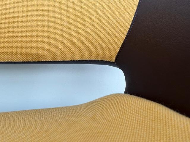 デンマーク買付便のチェアです。レトロカラーのファブリックとフェイクレザーの張り地はオリジナルカラーのままで全張替え済。大事に使っていただきながら新たなエイジングされていく様を楽しんでいただけたらと思います。