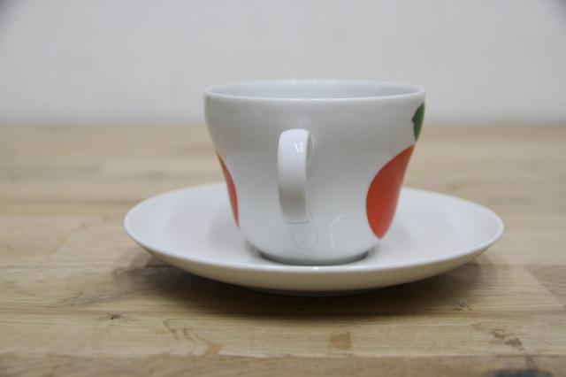 1910年創業Seltmann Weiden社のカップ&ソーサー。テーブルウェアを製造し続けているドイツでも大きな陶磁器製造会社のひとつでもあります。インパクトのある真ん丸なりんごプリントが魅力的なデザインです。