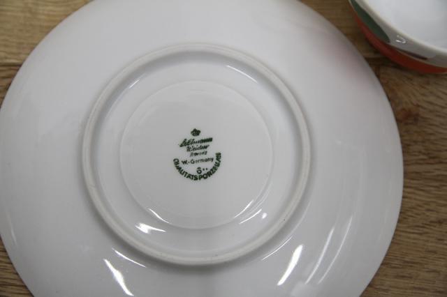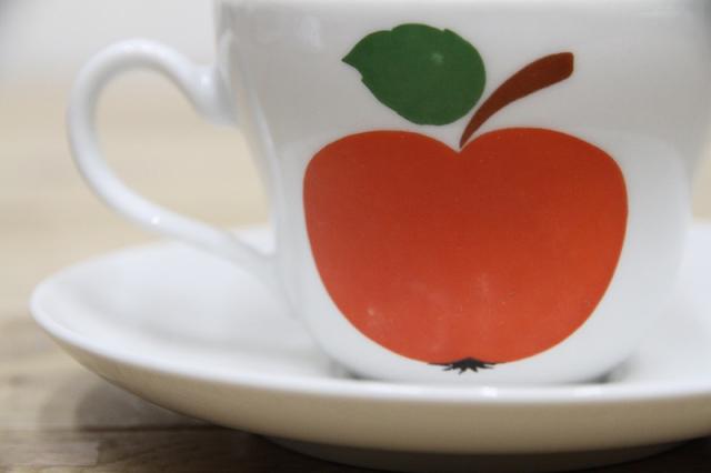 1910年創業Seltmann Weiden社のカップ&ソーサー。テーブルウェアを製造し続けているドイツでも大きな陶磁器製造会社のひとつでもあります。インパクトのある真ん丸なりんごプリントが魅力的なデザインです。