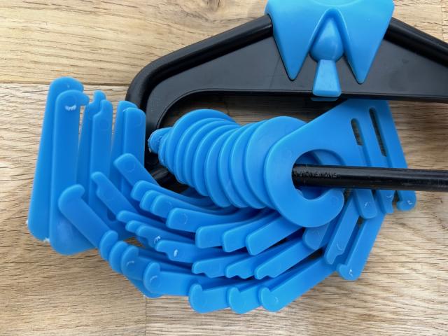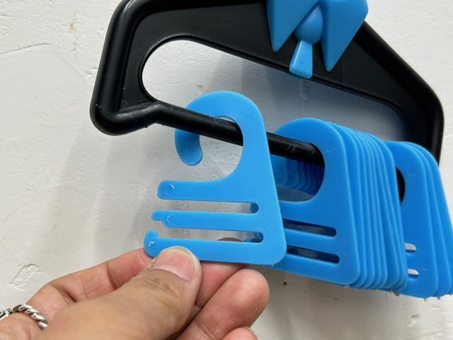 ネクタイ用のヴィンテージハンガーです。青い小さなハンガーにネクタイを収納します。シャツ型のデザインがとってもセンス良いです!