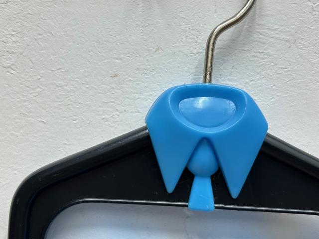 ネクタイ用のヴィンテージハンガーです。青い小さなハンガーにネクタイを収納します。シャツ型のデザインがとってもセンス良いです!